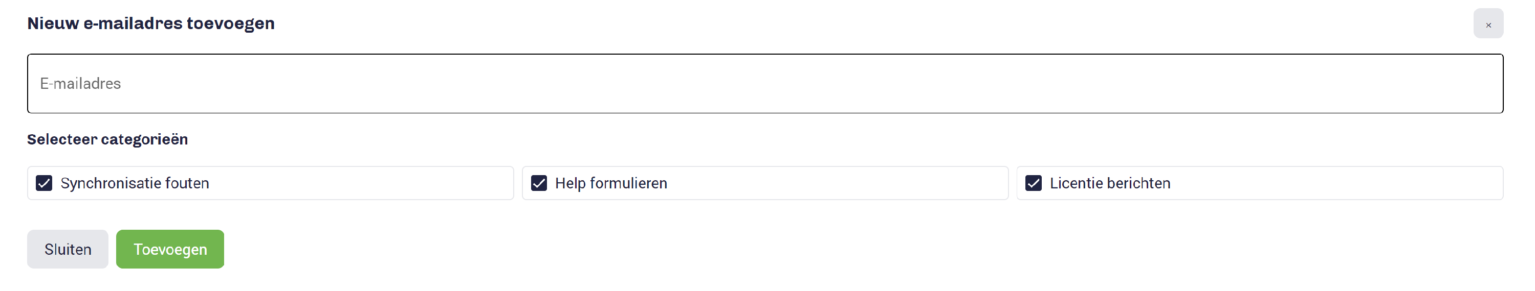 • Selecteer uit welke categorie dit mailadres mails moet ontvangen