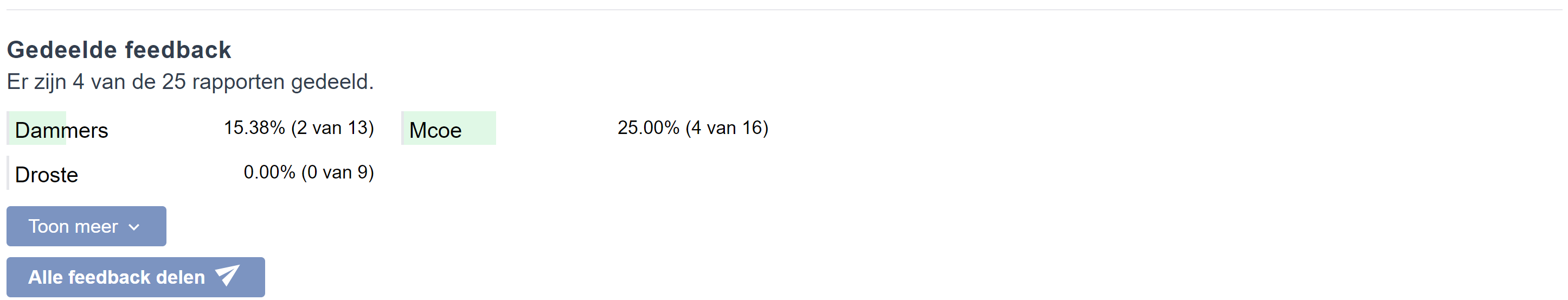 Wil je voor ALLE mentoren de feedback delen, klik dan op Alle feedback delen. Alle feedback wordt nu in één keer met alle leerlingen gedeeld.