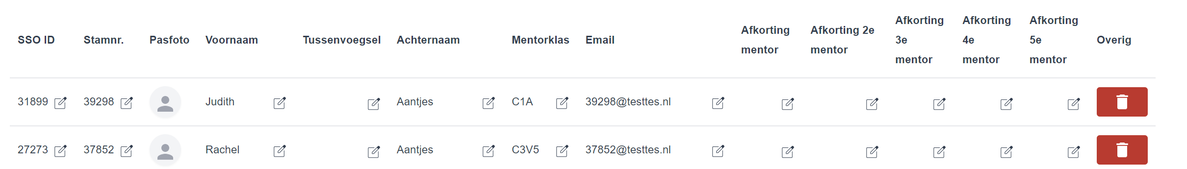 - Wanneer een leerling de school verlaat, moeten zowel de leerling als alle bijbehorende gegevens uit de tool worden verwijderd. Dit kan door middel van een import van een CSV bestand.