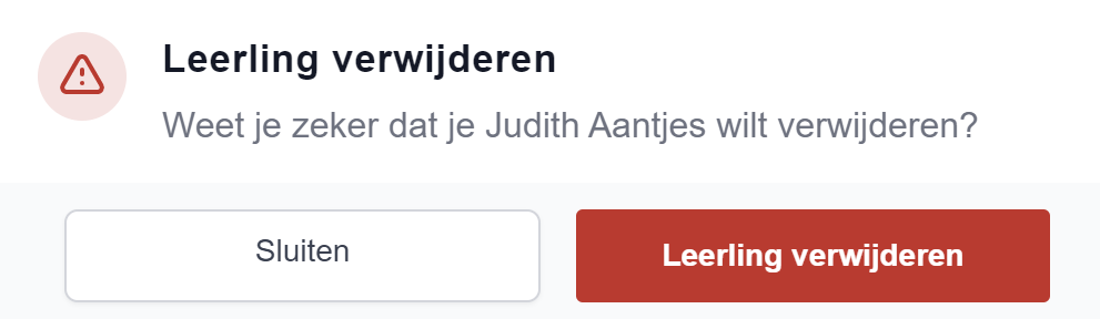 Let op: als een leerling is verwijderd, is daarmee ook alle data verwijderd. Deze actie is niet meer terug te draaien!