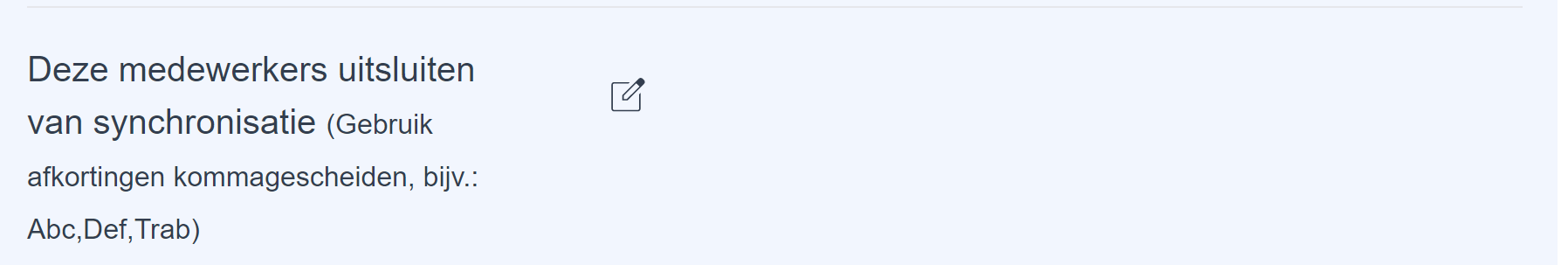 Gebruik hiervoor de exacte afkortingen zoals ze momenteel in de tool staan, hoofdlettergevoelig, en gescheiden door komma's zonder spaties.